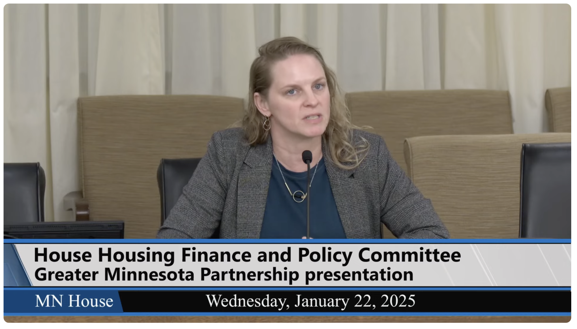 On Wednesday, GMNP Executive Director Darielle Dannen testified to the House Housing Committee regarding the housing challenges that Greater Minnesota communities face and the solutions the GMNP is recommending. Darielle emphasized that Greater Minnesota's biggest challenge is the mismatch between what it costs to build a housing unit and the price at which it can be sold or rented - in other words, a market failure. She also flagged some of the challenges of using state and federal housing programs in Greater Minnesota and the mismatch between current housing and community needs, particularly related to senior housing. And while there were significant investments in housing in 2023, many of the programs that directly benefit GMNP members have not yet been rolled out.